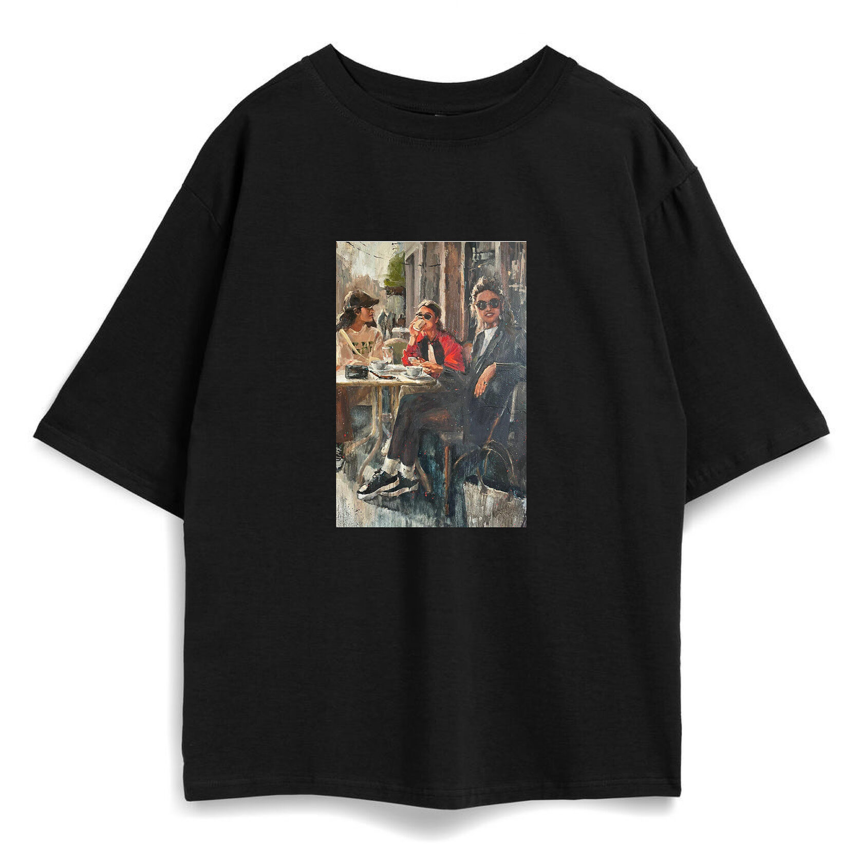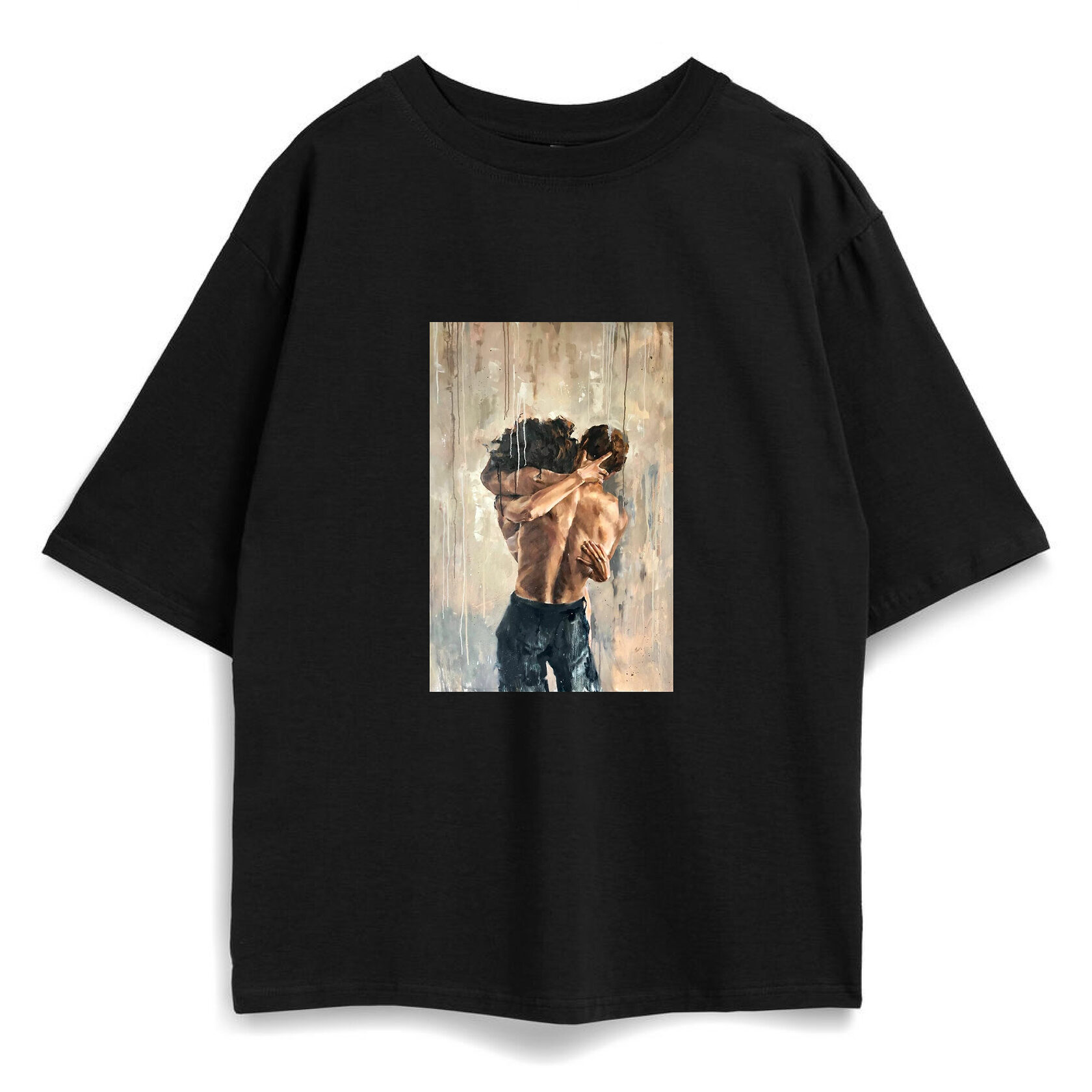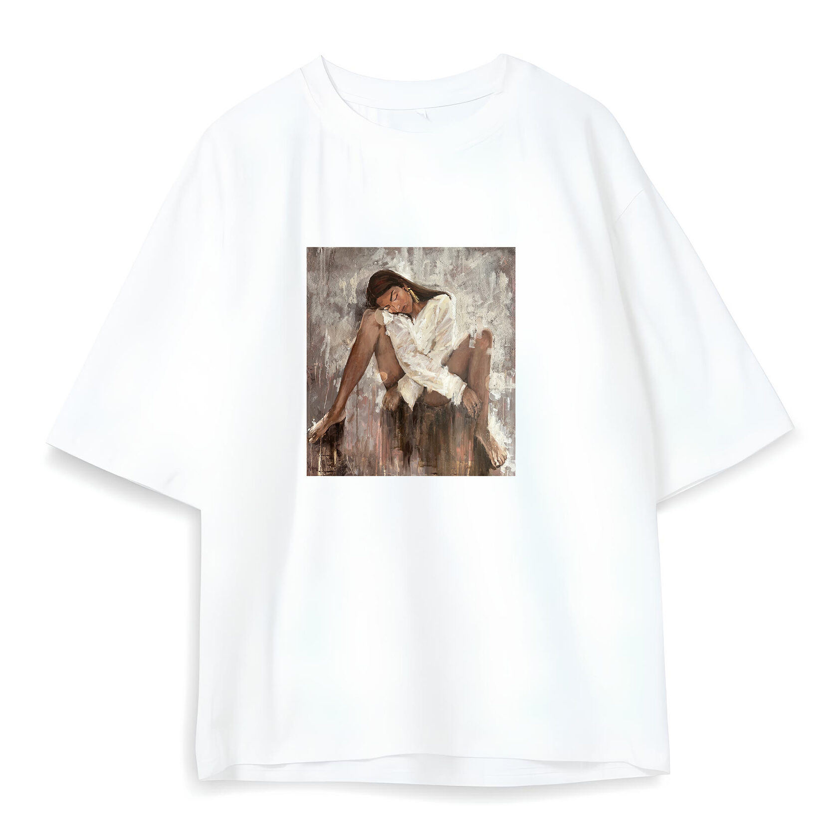 Футболка, крой оверсайз Художник: Кира Кривокобыльская 95% хлопок, 5% лайкра Размер: xs, s, m, l Цвет: черный, белый